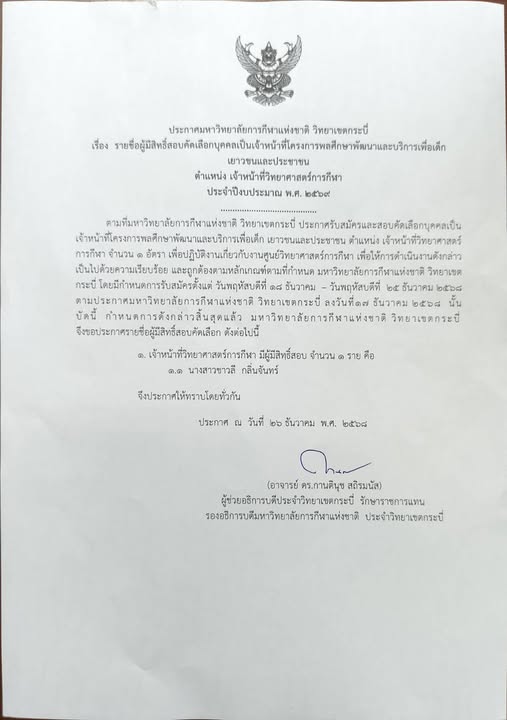 ประกาศมหาวิทยาลัยการกีฬาแห่งชาติ วิทยาเขตกระบี่